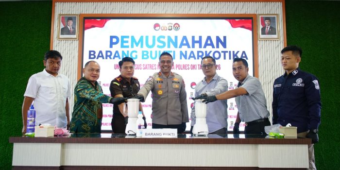 Perangi Narkoba, Polres OKI Blender Barang Bukti Sabu Senilai Ratusan Juta