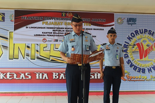 Kegiatan dimulai dengan pengambilan sumpah pejabat yang baru, kemudian penandatanganan berita acara pengambilan sumpah dan penyematan tanda jabatan oleh kalapas. Dilanjutkan dengan pemberian selamat dari seluruh pegawai Lapas Kelas IIA Banyuasin ditutup dengan foto bersama.