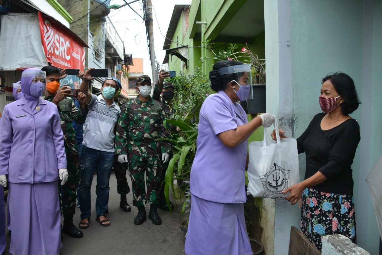 KRSUMSEL.com – Ditengah masih diberlakukannya Pembatasan Sosial Berskala Besar (PSBB) bagi masyarakat Jakarta. Komando Gabungan Wilayah Pertahanan-I (Kogabwilhan-I) kembali melakukan Bhakti Sosial kepada Masyarakat dengan membagikan paket sembako, di wilayah Kebon kosong Tanjung Priok, Jakarta Utara, Senin (18/5/2020), yang berada dekat Wisma Atlit RS. Darurat penanganan pasien Covid-19.