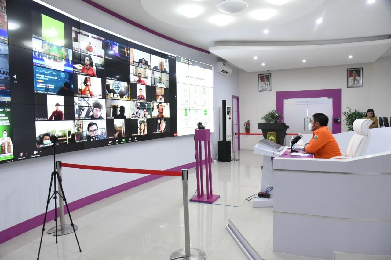 Seremonial penghargaan yang diserahkan melalui aplikasi zoom video conference yanh disiarkan secara langsung melalui platform media sosial Sriwijaya Post dan Tribun Sumsel, Senin (18/5) siang.