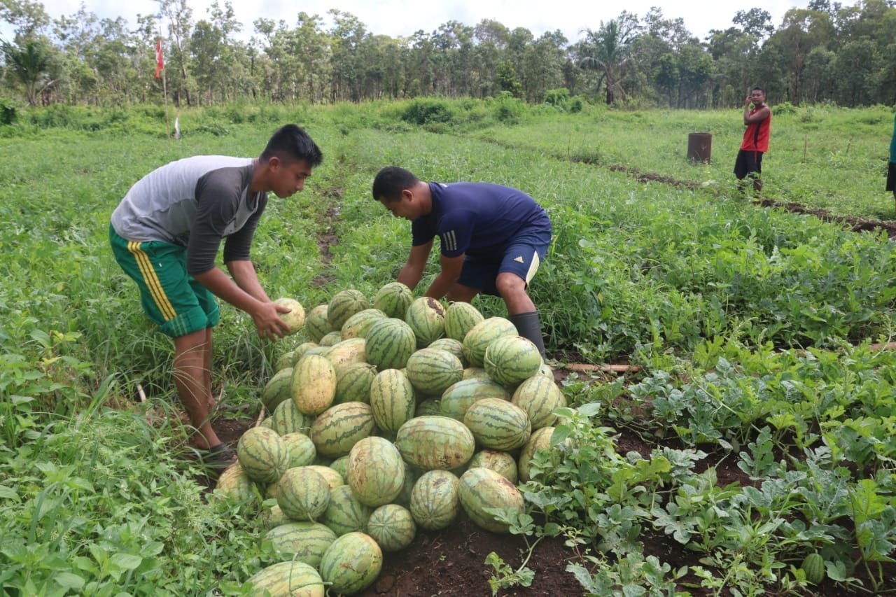 Seperti yang dilakukan personel Pos Komando Utama (Kout) Sota, beberapa bulan lalu menaman buah Semangka, kini musim panen tiba hasilnya cukup melimpah yang mana sebagian dibagikan kepada warga dan sebagian dijual di Kota Merauke.