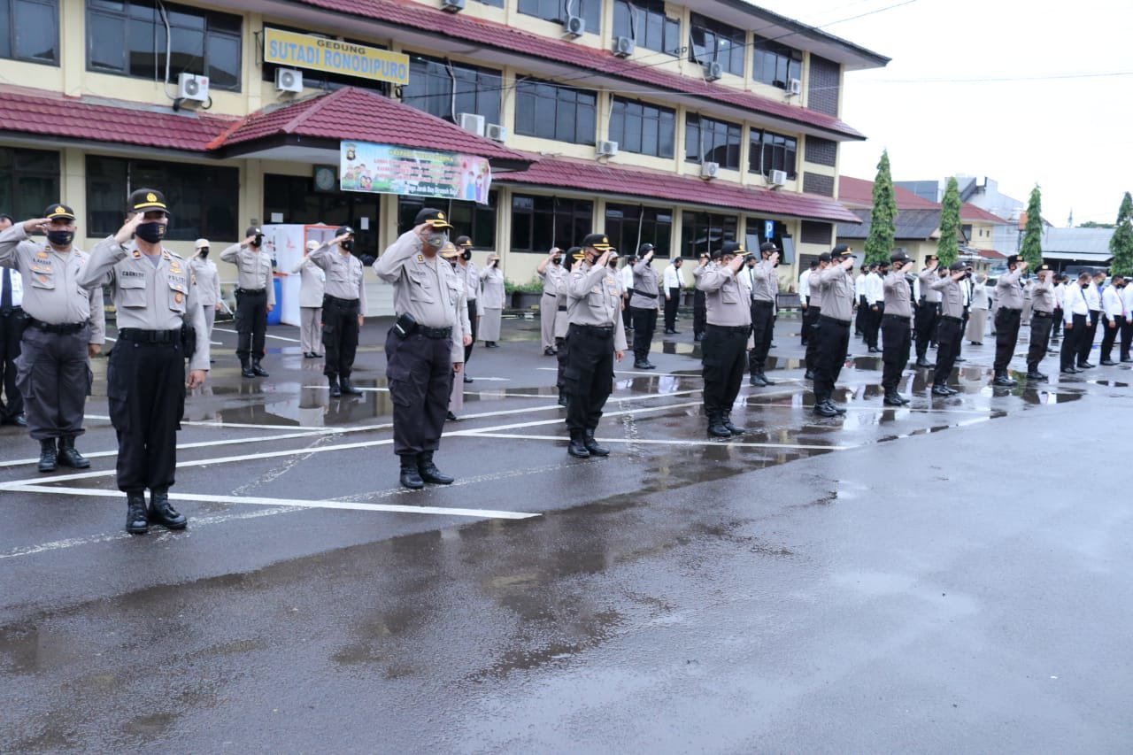 Pada Kesempatan Apel Pagi hari ini juga dibacakan 13 Protokol Kesehatan Untuk Aparat Keamanan sebagai acuan untuk Personil menjaga kebersihan dan kesehatan diri agar tidak terpapar Covid-19 yang merebak saat ini.