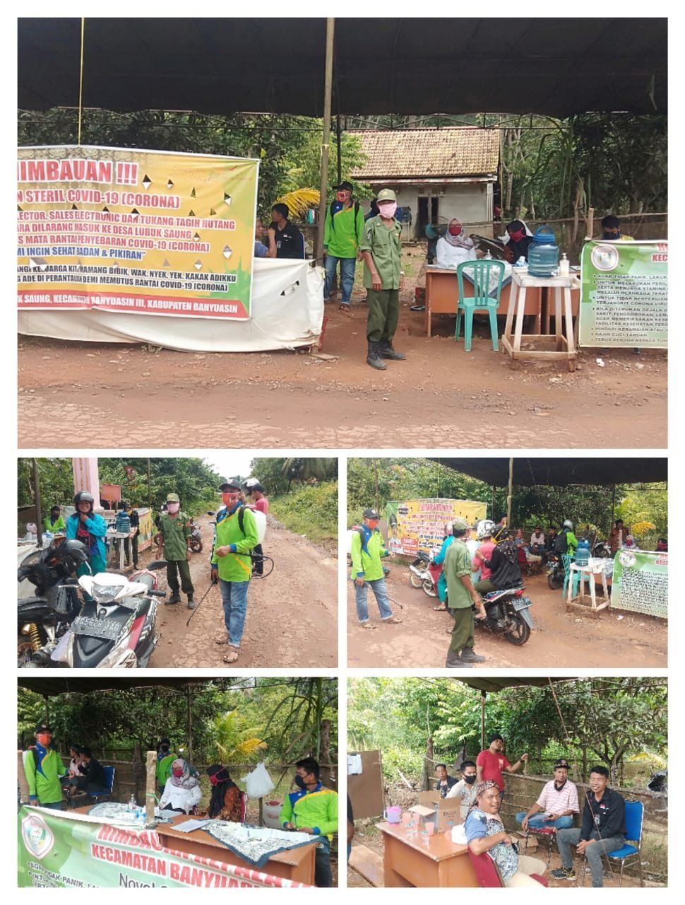 BANYUASIN, KR Sumsel – Sebagai Garda terdepan dalam penanggulangan penyebaran Virus Corona tingkat Desa, Posko Penanganan Covid-19 Terpadu Desa Lebuk Saung Terus berupaya untuk melakukan tindakan-tindakan efektif sebagai bagian dari pengabdian dan pelayanan kepada masyarakat. Yang berlokasi di perbatasan Desa Lebuk Saung dan Lingkungan Talang Kebang Kecamatan Banyuasin III Kabupaten Banyuasin, Senin (08/06/2020).