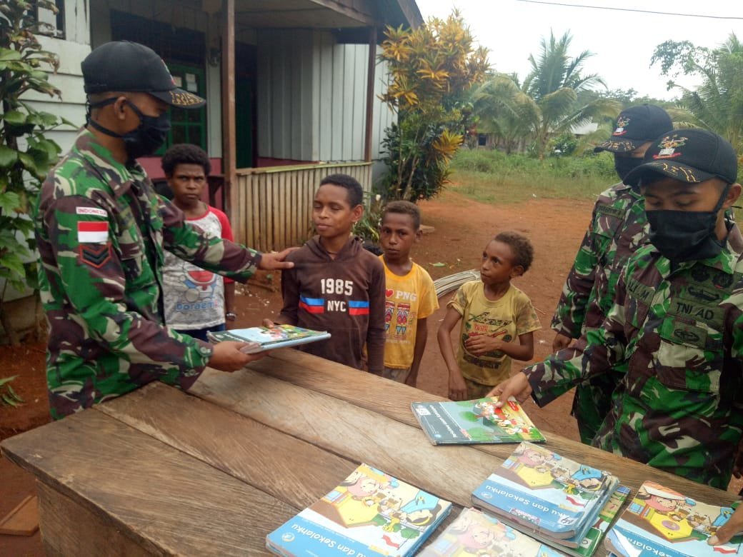 Lanjut dikatakannya bahwa untuk memberikan motivasi dan semangat kepada anak-anak, 6 orang personel Pos Bupul 12 yang dipimpin oleh Wadanpos Sertu Agus Duwi memberikan hadiah buku bacaan dan buku pelajaran kepada siswa-siswi SD Inpres Bupul 12 di Kampung Baidub. “Semoga hal sederhana ini dapat membawa manfaat baik ditengah pandemi virus corona yang mengharuskan anak-anak sekolah belajar dirumah,” katanya.