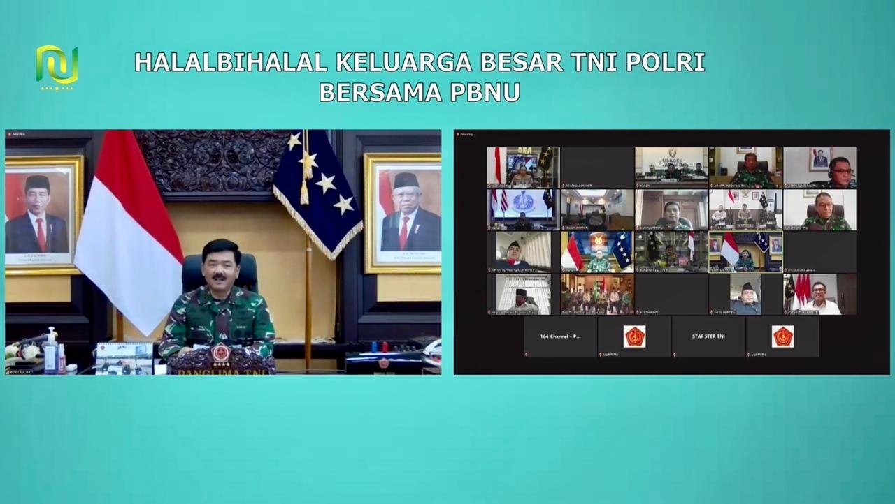 Acara silaturahmi dan halal bihalal TNI – Polri dengan PBNU yang dilakukan secara daring diikuti pula diantaranya Kasad Jenderal TNI Andika Perkasa, Kasal Laksamana TNI Yudo Margono, S.E., M.M., Kasau Marsekal TNI Fadjar Prasetyo, S.E., M.P.P., Kapolri Jenderal Polisi Drs. Idham Azis, M.Si., Wakapolri, para Asisten Panglima TNI, Asisten Kepala Staf Angkatan, Ketua Umum PBNU Prof. Dr. KH. Agil Siraj, MA., Rais Aam PBNU K.H. Miftachul Akhyar, Sekjen PBNU Helmi Faisal, serta warga Nahdliyin.(****)