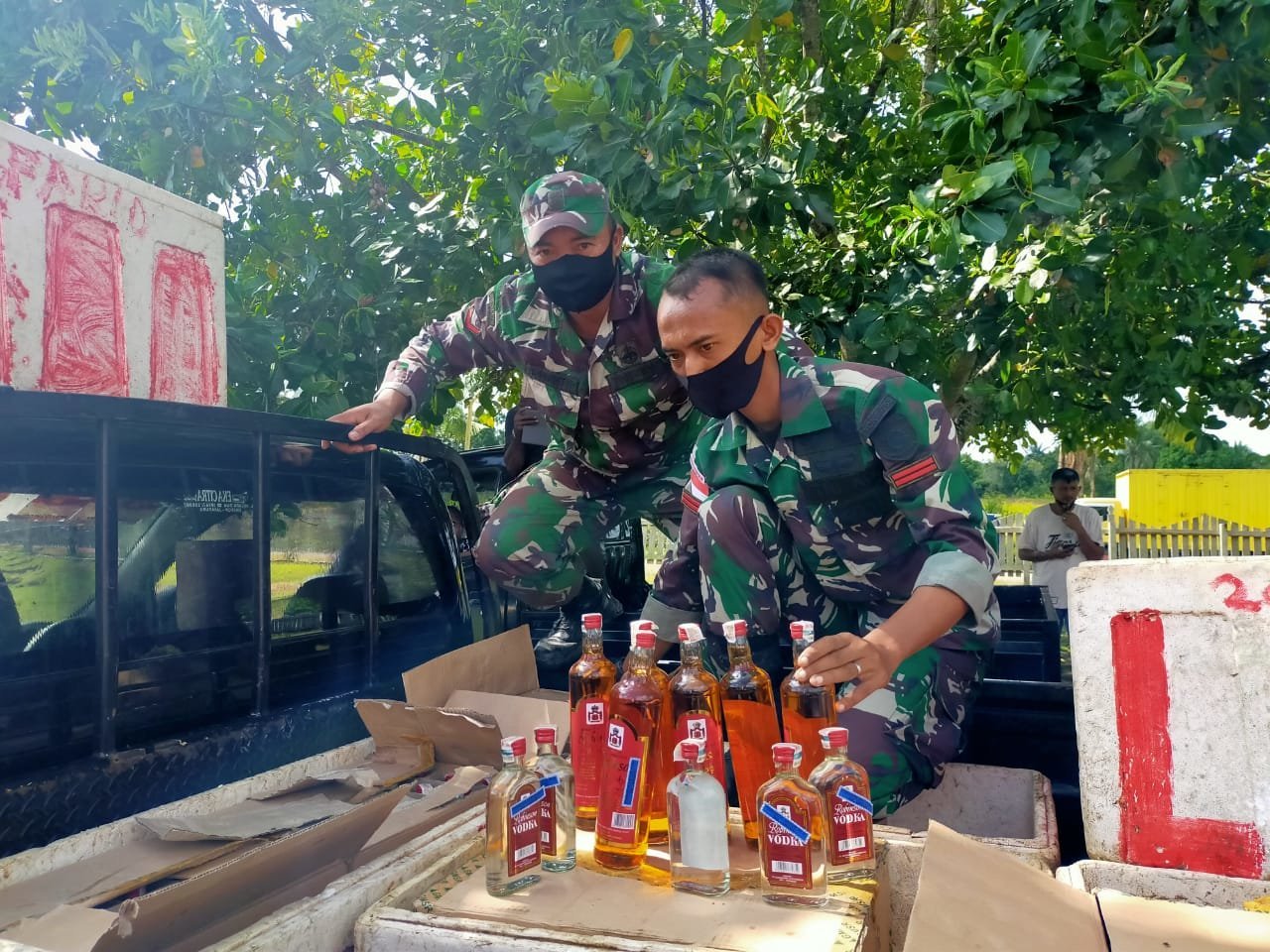 Pada pemeriksaan kali ini, personel Satgas Yonif 754/ENK/20/3 Kostrad berhasil mengamankan 312 botol Minuman Keras (Miras) dari mobil pick up warna hitam yang melintas memasuki Distrik Bonggo, Kabupaten Sarmi, Papua, Senin (8/6/2020) waktu setempat.