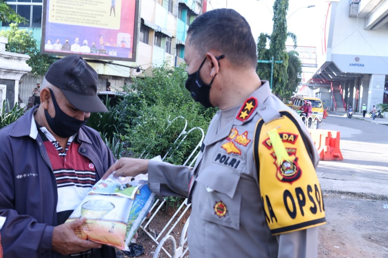 Sebagai Polisi dulur Kito masyarakat tersebut menerima beras dan masker dari Polda Sumsel.