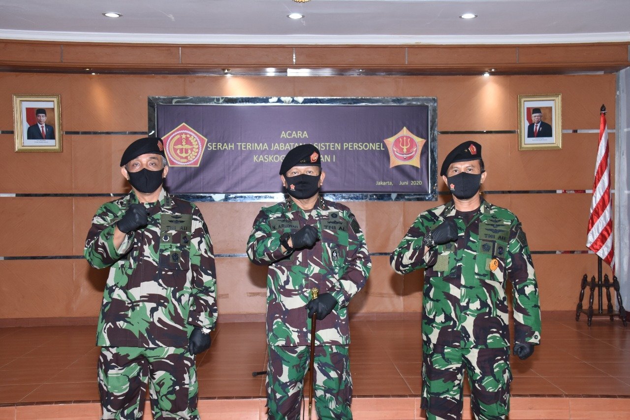 Jakarta, KRSUMSEL.com – Kamis 11 Juni 2020. (Pen Kogabwilhan I). Pangkogabwilhan-I Laksda TNI I.N.G. Ariawan., S.E. M.M. Memimpin langsung acara Serah Terima Jabatan (Sertijab) Aspers Kas Kogabwilhan I dari Marsma TNI Muhammad Syafii, S.I.P. M.M. Kepada Kolonel Adm Bejo Suprapto, S.T. di gedung Nanggala Mako Kogabwilhan I, Jakarta, Kamis (11/6/2020).