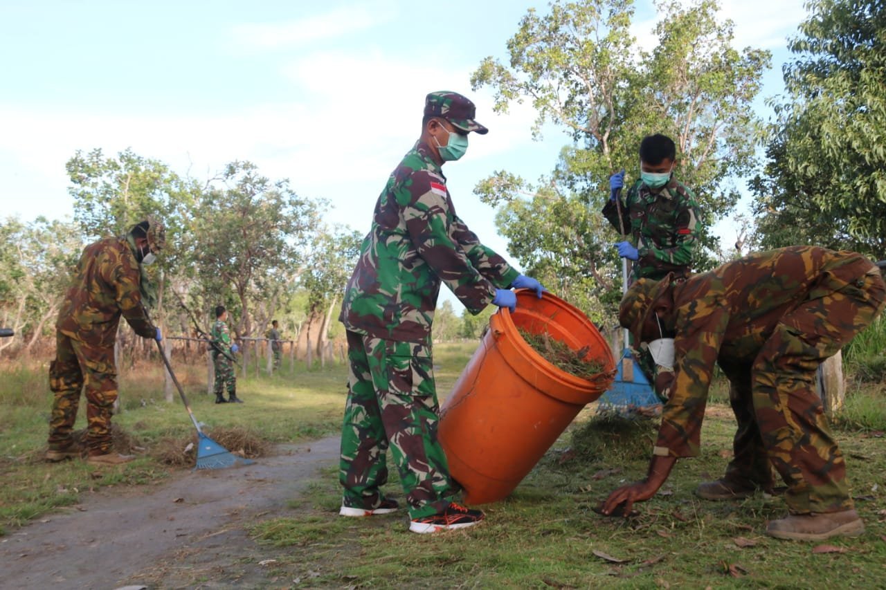 “Sasaran kegiatan karya bakti kali ini, mulai dari pemotongan rumput di jalan masuk antar kedua negara dan pengambilan sampah-sampah plastik guna memperindah jalan masuk diperbatasan RI-PNG,” terang Rizky.