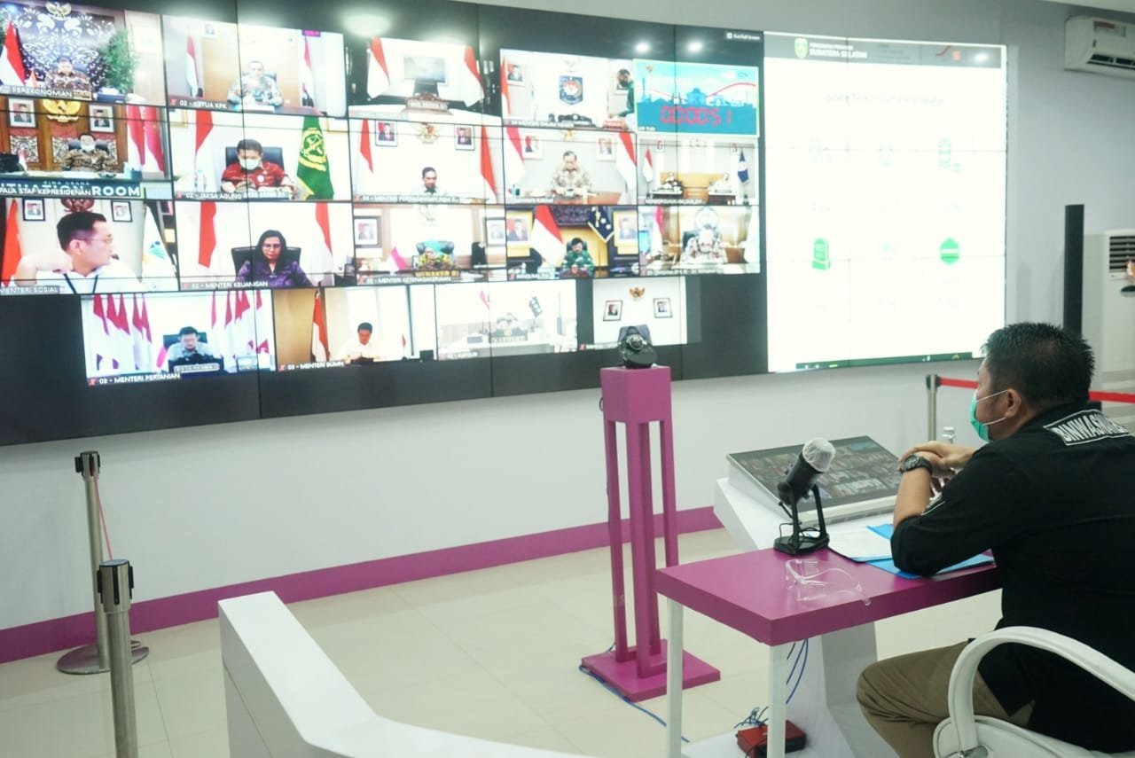 Palembang, KRSUMSEL.com – Mengawali agendanya Senin (15/6) pagi, Gubernur Sumsel H.Herman Deru mengikuti Rakornas Pengawasan Intern Pemerintah Tahun 2020 secara virtual bersama Presiden Joko Widodo dari Command Center Pemprov Sumsel.
