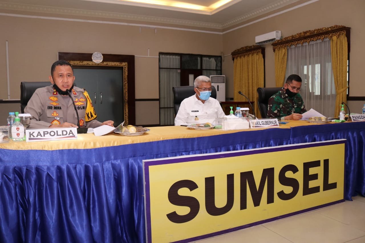 Palembang, KR Sumsel – Kapolda Sumsel Irjen Pol Prof. Dr. Eko Indra Heri S,M.M didampingi Pangdam II Sriwijaya Mayjen TNI Irwan SIP. M.Hum dan Wakil Gubernur Provinsi Sumatera Selatan H. Ir.Mawardi Yahya membuka Rakor Penanganan Karhutla Tahun 2020, Rabu (17/6) bertempat di gedung Catur Prasetya Mapolda Sumsel.