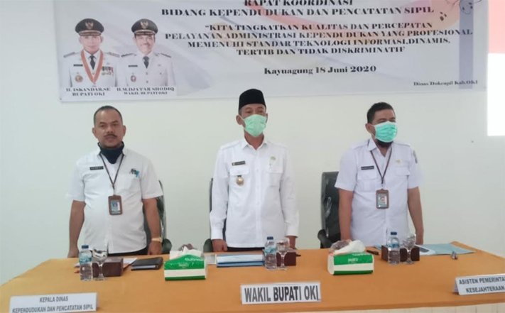 OKI, KR Sumsel – Guna meningkatkan kualitas pelayanan terhadap masyarakat, Dinas Kependudukan dan Catatan Sipil (Disdukcapil) Kabupaten Ogan Komering Ilir (OKI) Provinsi Sumatera Selatan menggelar rapat koordinasi (rakor) di aula kantornya, Jumat (19/6/2020).