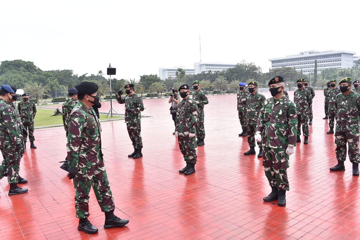 KRSUMSEL.com – (Puspen TNI). Panglima TNI Marsekal TNI Dr. (H.C.) Hadi Tjahjanto, S.I.P. menerima Laporan Korp Kenaikan Pangkat 83 Perwira Tinggi (Pati) TNI yang terdiri dari 56 Pati TNI AD, 8 Pati TNI AL dan 19 Pati TNI AU, di Mabes TNI, Cilangkap, Jakarta Timur, Senin (22/6/2020).