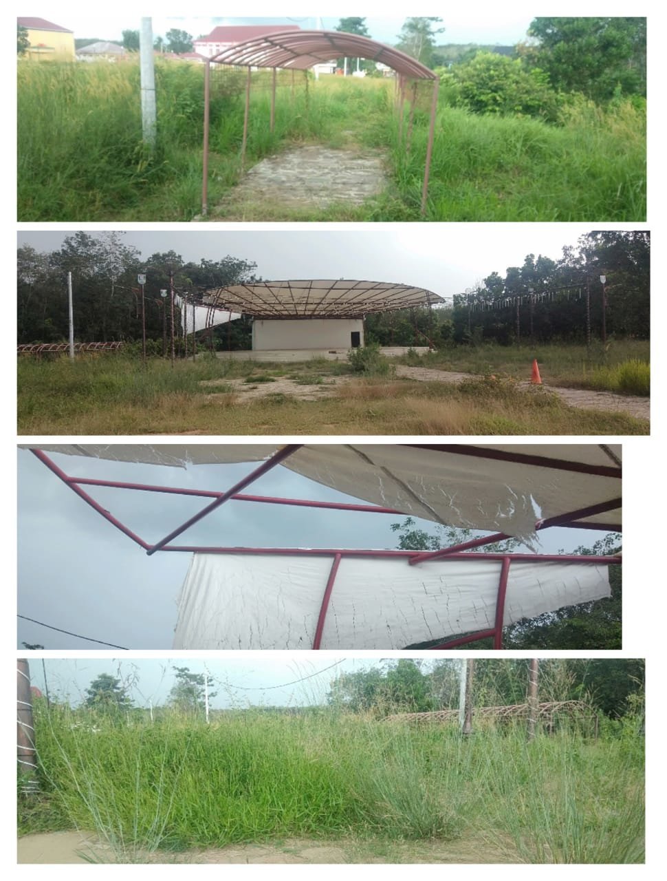 BANYUASIN, KRSumsel.com – Beberapa fasilitas publik di alun-alun Kota Pangkalan Balai mengalami kerusakan. Fasilitas yang terbilang rusak parah yaitu panggung hiburan di alun-alun atap sudah di layak dipakai dan rumput sudah semek-semak.