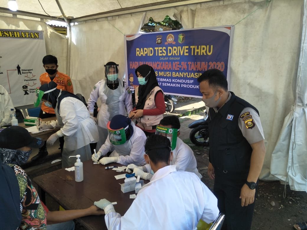 Selain drive thru terhadap pengendara yang melintas. Rapid tes juga diikuti oleh anggota Tni-Polri yang jumlah keseluruhan sebanyak 55 orang dengan hasil seluruhnya non reaktif.