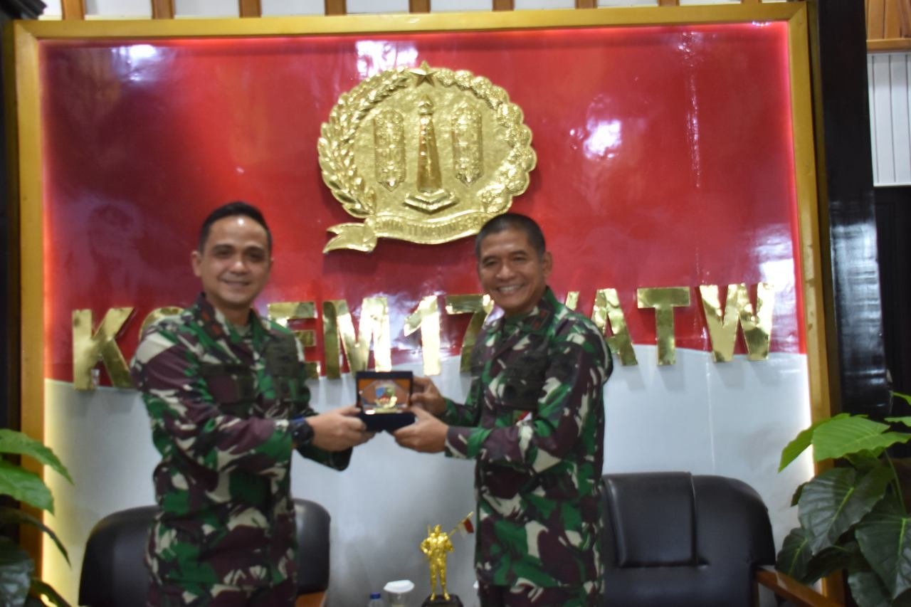 Pada kesempatan tersebut, Brigjen TNI Bangun Nawoko dan Marsma TNI Deni Hasoloan Simanjuntak saling tukar menukar cinderamata, dilanjutkan foto bersama di depan Makorem 174/ATW. (****)