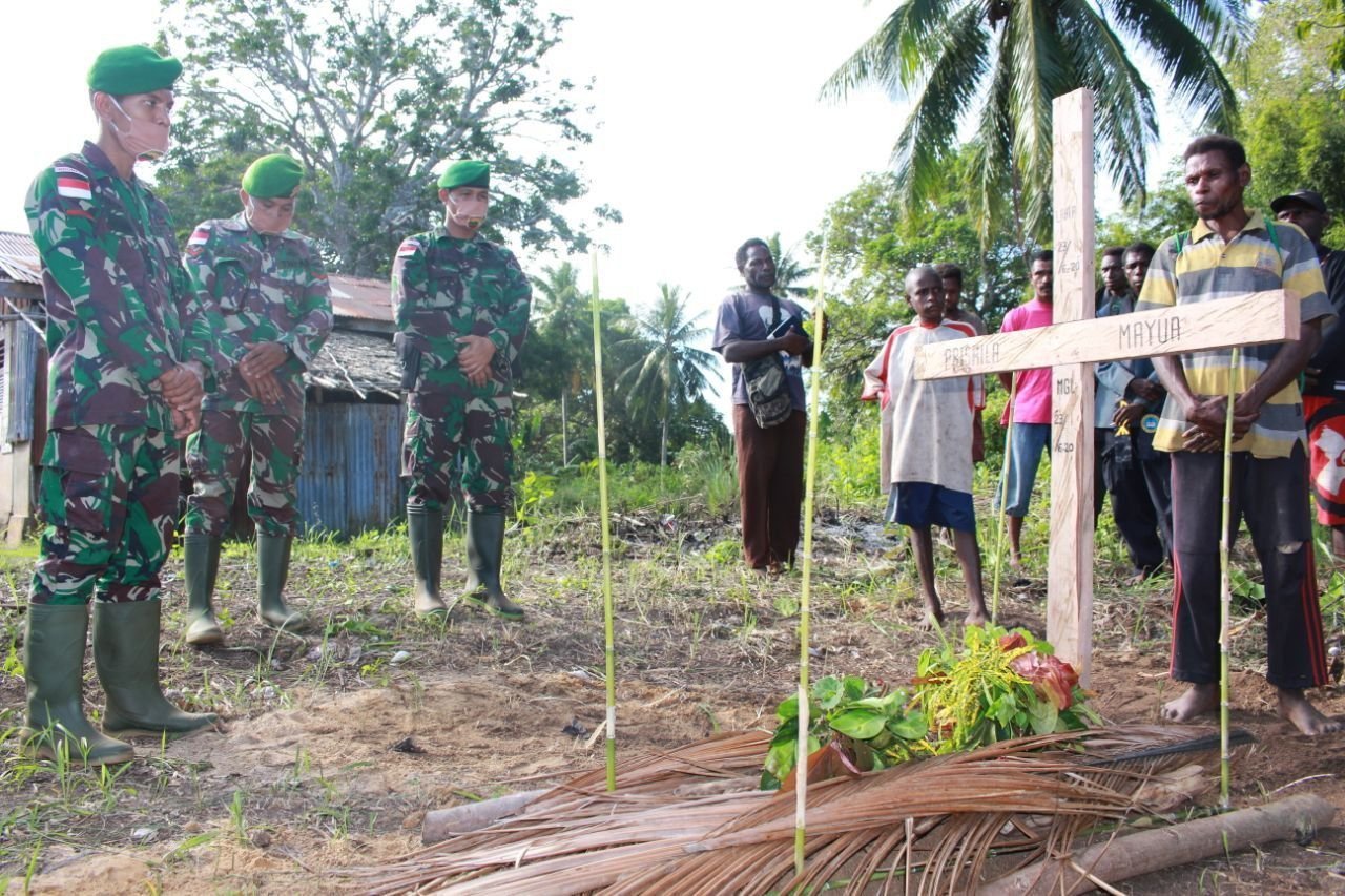 Dansatgas Yonif 125/Simbisa Letkol Inf Anjuanda Pardosi, Kamis (25/6/2020) menjelaskan, personel dari Pos Kondo hadir dan turut membantu proses pemakaman almarhumah Priskila Mayua yang merupakan putri pertama dari Bapak Ruben Mayua dan Ibu Lenora Sanggra.