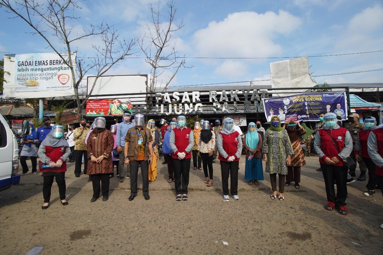 Untuk itulah sebagai bentuk kepedulian kepada masyarakat khususnya para pedagang pasar tradisional yang aktivitasnya berada dalam kerumunan dan rentan terpapar covid-19, Ketua TP PKK Sumsel Feby Deru didampingi Wakil Ketua 1 TP PKK Sumsel Fauziah Mawardi Yahya bekerjasama dengan satgas covid-19 Sumsel bidang ekonomi, hari ini Jumat (26/06) membagikan 261 APD berupa masker dan face shields bagi para pedagang di pasar Kebon Semai, dan 486 APD bagi pedagang di pasar Sekip Ujung.