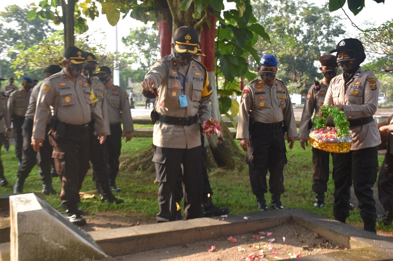Ziarah makam dipimpin langsung Kapolres Muba AKBP Yudhi Surya Markus Pinem, Sik dan diikuti personel Polres Muba.