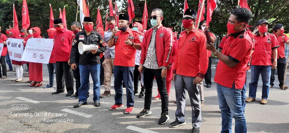 OKI, KR Sumsel – Pengurus DPC PDI Perjuangan bersama fraksi PDI Perjuangan DPRD Kabupaten OKI melakukan aksi damai dengan longmarch dari Kantor DPC PDI Perjuangan menuju ke Mapolres OKI, Senin (29/6/2020).
