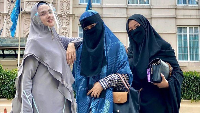Dalam foto tersebut, Umi Pipik terlihat mengenakan busana kotak-kotak dengan hijab biru. Sementara Mulan mengenakan setelan berwarna abu-abu lengkap dengan face shield.