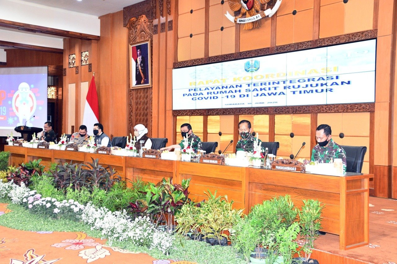 Surabaya, KRSUMSEL.com – 1 Juli 2020. (Pen Kogabwilhan II). Guna mempercepat penanganan Covid-19 di Jawa Timur, Pangkogabwilhan II Marsdya TNI Imran Baidirus, S.E. menyiapkan aplikasi sistem rujukan satu pintu atau “one gate system”, yang disampaikan pada saat Rapat Koordinasi (Rakor) bersama dengan Forum Komunikasi Pimpinan Daerah (Forkopimda) Jatim dan 99 Direktur Rumah Sakit (RS) rujukan di Kantor Gubernur Jatim, Jalan Pahlawan, Surabaya, Selasa (30/6/2020).