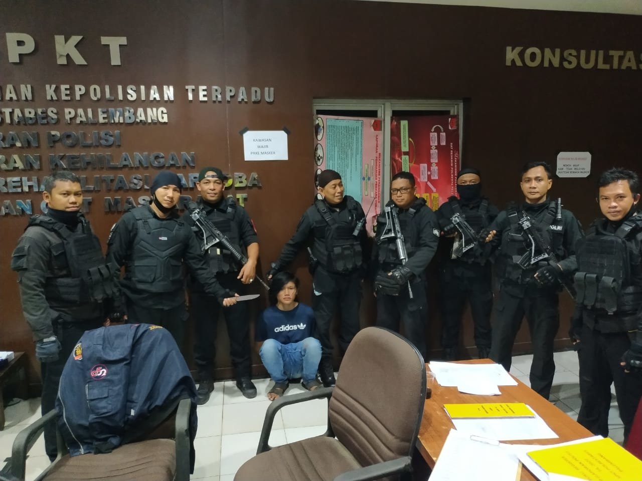 Alhasil, saat digeledah petugas, ditemukan sebilah pisau yang saat itu diselipkan di pinggangnya. Didapati Sajam tersebut, AD pun langsung digiring petugas ke Polrestabes, Palembang, guna mempertanggung jawabkan ulahnya.
