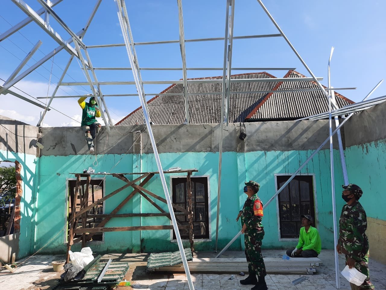 OKI, KR Sumsel – Anggota Satuan Tugas TNI Manunggal membangun Desa (Satgas TMMD) Regtas ke-108 Kodim 0402/OKI, Kopka Anto dan beberapa anggota Satgas TMMD lainnya bersama warga masyarakat Desa Pulau Negara Kec. Pemulutan Barat Kab. Ogan Ilir melanjutkan pekerjaan pemasangan atap Masjid Nurul Qalbi yang merupakan salah satu sasaran fisik program TMMD kali ini, Jumat (10/7/2020).