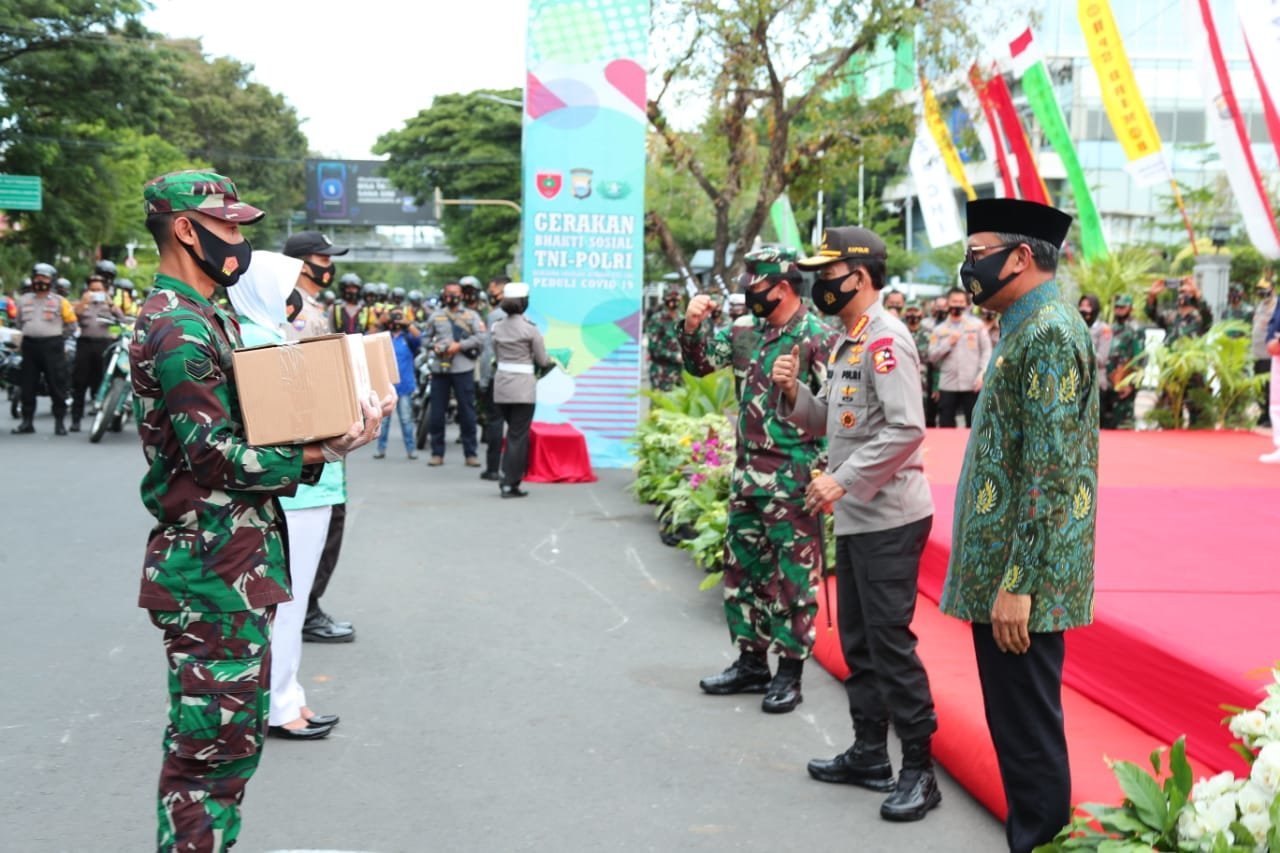 Dalam arahannya, Panglima TNI menyampaikan bawa ratusan Babinsa, Bhabinkamtibmas dan ojek online melaksanakan tugas sangat mulia yaitu mengantarkan 10.000 paket bingkisan untuk masyarakat. Mereka mengantarkan bantuan sosial kepada mayarakat yang membutuhkan dan bantuan sosial ini bentuk partisipasi dari seluruh elemen untuk masyarakat di tengah pandemi Covid-19.