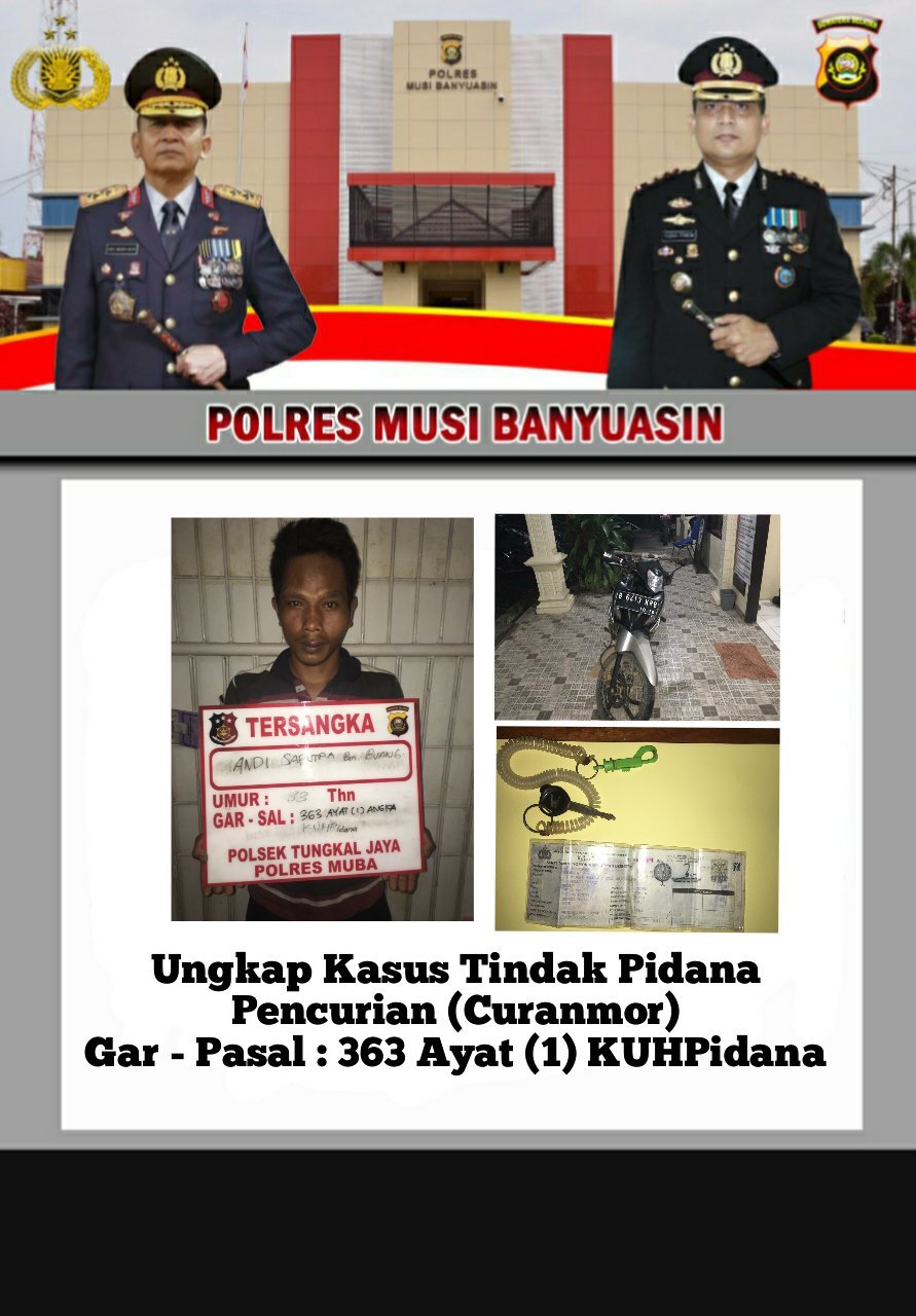 Muba, KRSumsel.com – Terdorong ingin memiliki sepeda motor, Andi Saputra (33) warga Dusun I, Desa Iso Rejo, Kecamatan Bunga Mayang, Kabupaten Lampung Utara, Provinsi Lampung nekat mencuri sepeda motor. Korbannya sendiri diketahui bernama Sugianto yang merupakan karyawan PT. PSM.