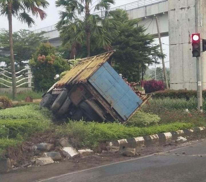 Diketahui tidak ada korban dalam kecelakaan tunggal tersebut, yang ada hanya kerusakan material pada mobil truk tersebut.