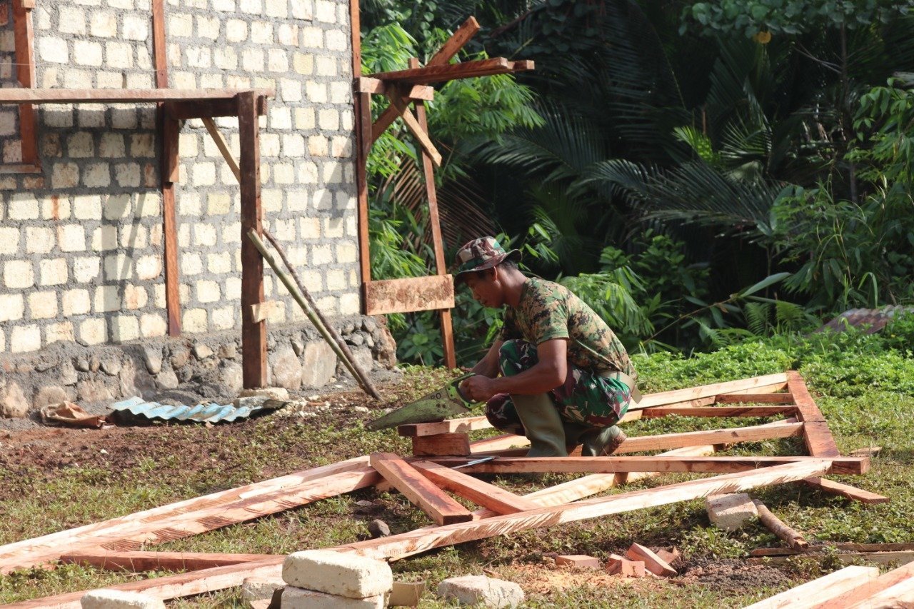 KABAR TNI, KR Sumsel – Personel Komando Distrik Militer 1709/Yapen Waropen (Kodim 1709/Yawa) yang tergabung dalam Satgas TNI Manunggal Membangun Desa (TMMD) ke-108 tahun 2020 di Kampung Natabui dan Toweta, Distrik Yapen Barat, Kab. Kepulauan Yapen, Papua, mempercepat proses pembangunan 13 unit rumah untuk warga, Sabtu (18/7/2020).