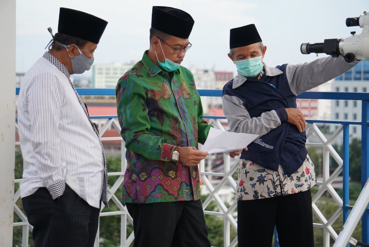 Kegiatan rukyatul hilal dipimpin Kakanwil Kemenag Sumsel Dr. HM. Alfajri Zabidi MM, M.Pd.I didampingi Kasubbag Umum dan Humas Dr. H. Saefudin M.Si di Rafah Tower UIN Raden Fatah Palembang, Selasa (21/7) sore. Turut hadir Ketua Pengadilan Tinggi Agama Kota Palembang Drs.H. Endang Ali Maksum, SH, MH serta para tokoh agama, organisasi massa Islam, serta awak media baik media cetak maupun media elektronik.