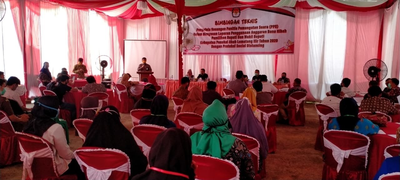 PALI, KRsumsel.com – Untuk memperkuat pemahaman dan pengetahuan Sekretaris dan Bendahara Panitia Pemungutan Suara (PPS) dalam pengelolaan laporan pertanggung jawaban keuangan Dana Hibah Pilkada Pali Tahun 2020, Komisi Pemilihan Umum (KPU) Kabupaten PALI menggelar bimbingan teknis Pengelola Keuangan bagi PPS yang berada di kabupaten PALI, Selasa (28/7/2020) bertempat di halaman Kantor KPU Kabupaten PALI.