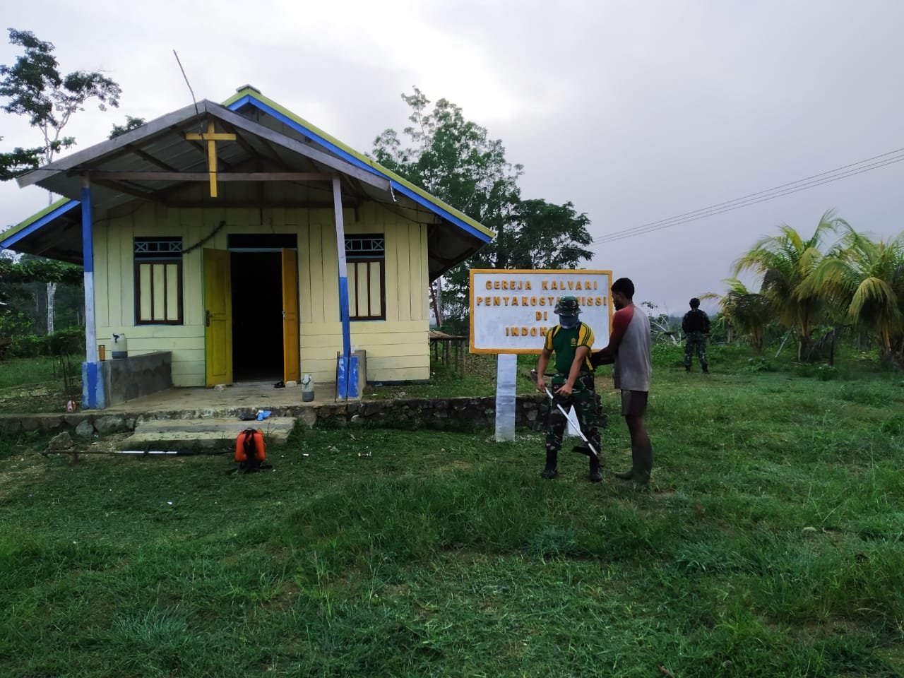 “Rumputnya sudah panjang, dalam Gereja pun sudah kotor jadi kami berkoordinasi dengan Bapak Meidan Warobai selaku Pendeta untuk dilaksanakannya karya bhakti pembersihan lingkungan sekitar,” ujar Kapten Inf Senopati Yudho.