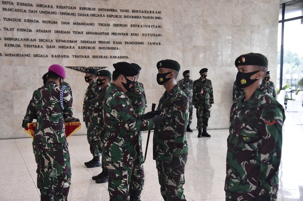 Demikian disampaikan Panglima TNI Marsekal TNI Hadi Tjahjanto, S.I.P. usai menyematkan secara simbolis tanda penghargaan Satya Lencana Wira Darma kepada 10 perwakilan prajurit TNI dari Yonif Raider 300/Bjw, bertempat di Mabes TNI, Cilangkap, Jakarta Timur, Rabu (12/8/2020).