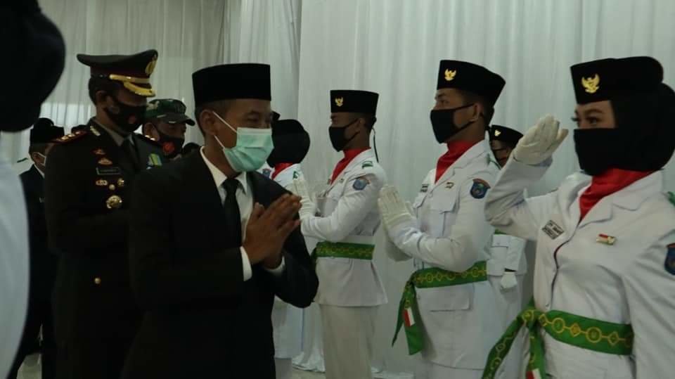 OKI, KR Sumsel – Wakil Bupati OKI HM Djafar Shodiq mengukuhkan 34 Putra dan Putri terbaik di Kabupaten Ogan Komering Ilir (OKI) sebagai Pasukan Pengibar Bendera Pusaka (Paskibraka) tahun 2020. Acara pengukuhan ini bersamaan juga dengan pengukuhan paskibraka di 34 Provinsi yang ada di Indonesia, kamis (13/8/2020).