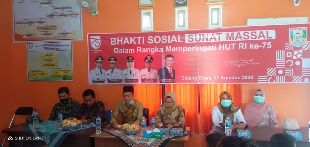 Sementara,Camat Banyuasin III Dra. Yuni Khairini M.si.mengatakan, Alhamdulillah tahun ini dibantu oleh Pemerintah desa sidanng mas bersama-sama dengan BPD wujudkan khitanan secara sunat masal dalam rangka kegiatan bakti sosial Hut kemerdekaan RI yang ke-75 tahun 2020,