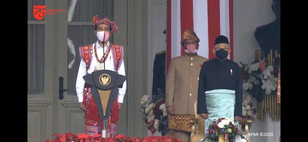 Hadir dalam upacara HUT Ke-75 Kemerdekaan Republik Indonesia antara lain Wapres RI KH Ma’ruf Amin, Ketua MPR Bambang Soesatyo, Ketua DPR Puan Maharani, Ketua DPD La Nyalla Mattalitti, Menteri Agama Fachrul Razi dan Kapolri Jenderal Polisi Idham Azis.(****)