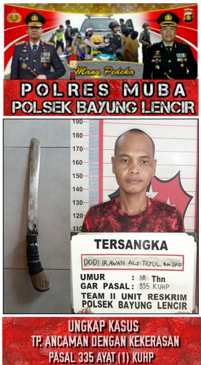 Kapolres Muba AKBP Erlin Tangjaya, SH, SIK melalui Kapolsek Bayung Lincir AKP Jonroni, SH kepada awak media, Minggu (23/08/2020) membenarkan penangkapan terhadap Dodi Irawan warga Dusun IV, Desa Alai, Kecamatan Lembak, Kabupaten Muara Enim.