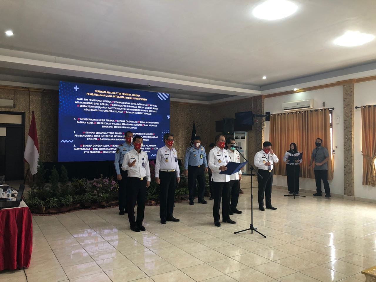 Kegiatan diisi langsung Sekretaris Jenderal Kementerian Hukum dan HAM RI Bambang Rantam Sariwanto. Kegiatan ini diikuti oleh seluruh Kepala Unit Pelaksana Teknis Pemasyarakatan dan Imigrasi serta Tim Pokja WBK/WBBM dan jajaran Kantor Wilayah Kementerian Hukum dan HAM Sumsel yang disebarluaskan melalui Aplikasi Zoom.