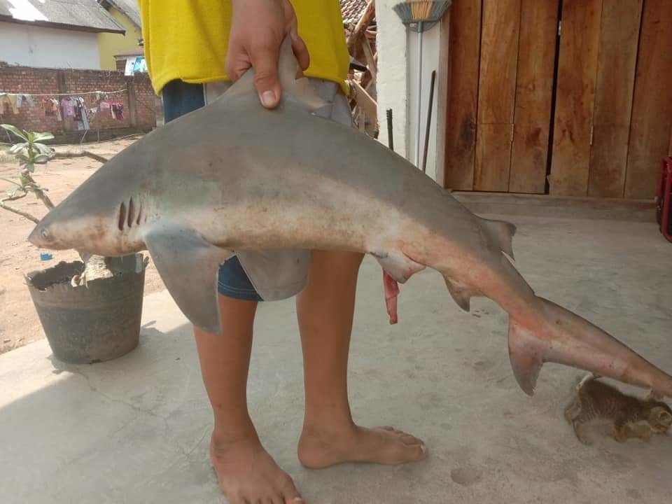 Muba, KRSumsel.com – Tidak biasa, habitat ikan hiu yang hidup dilautan. Kali ini justru ditemukan di perairan Sungai Musi yang berada di Desa Teluk Kijing 1, Kecamatan Lais, Kabupaten Musi Banyuasin (Muba). Ikan predator ini ternyata tersangkut di jaring nelayan di aliran sungai musi tersebut.