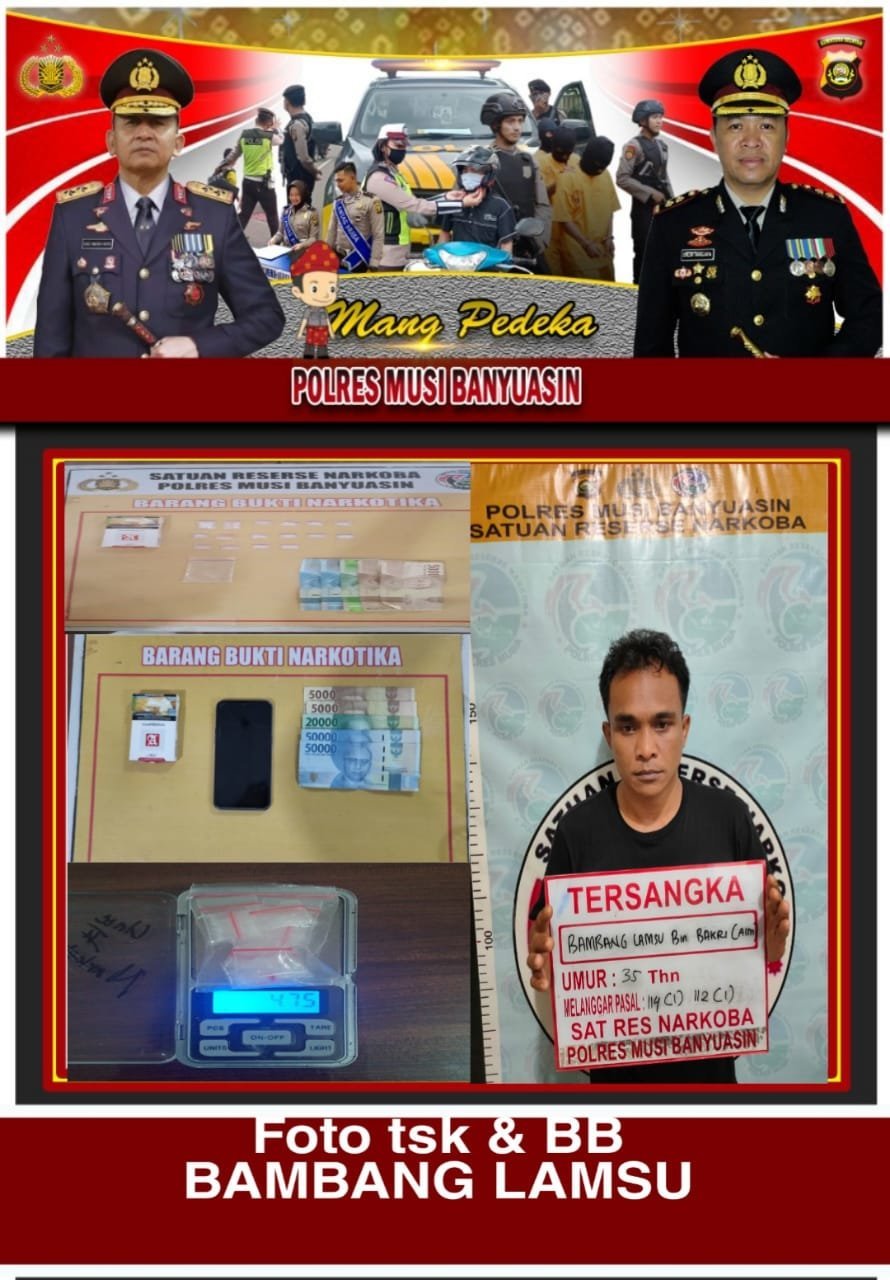 Ialah Bambang Lamsu (35) yang berakhir di bilik jeruji. Usai ditangkap jajaran Sat Res Narkoba Polres Muba pada, Selasa (01/08/2020) sekitar pukul 15.30 wib.