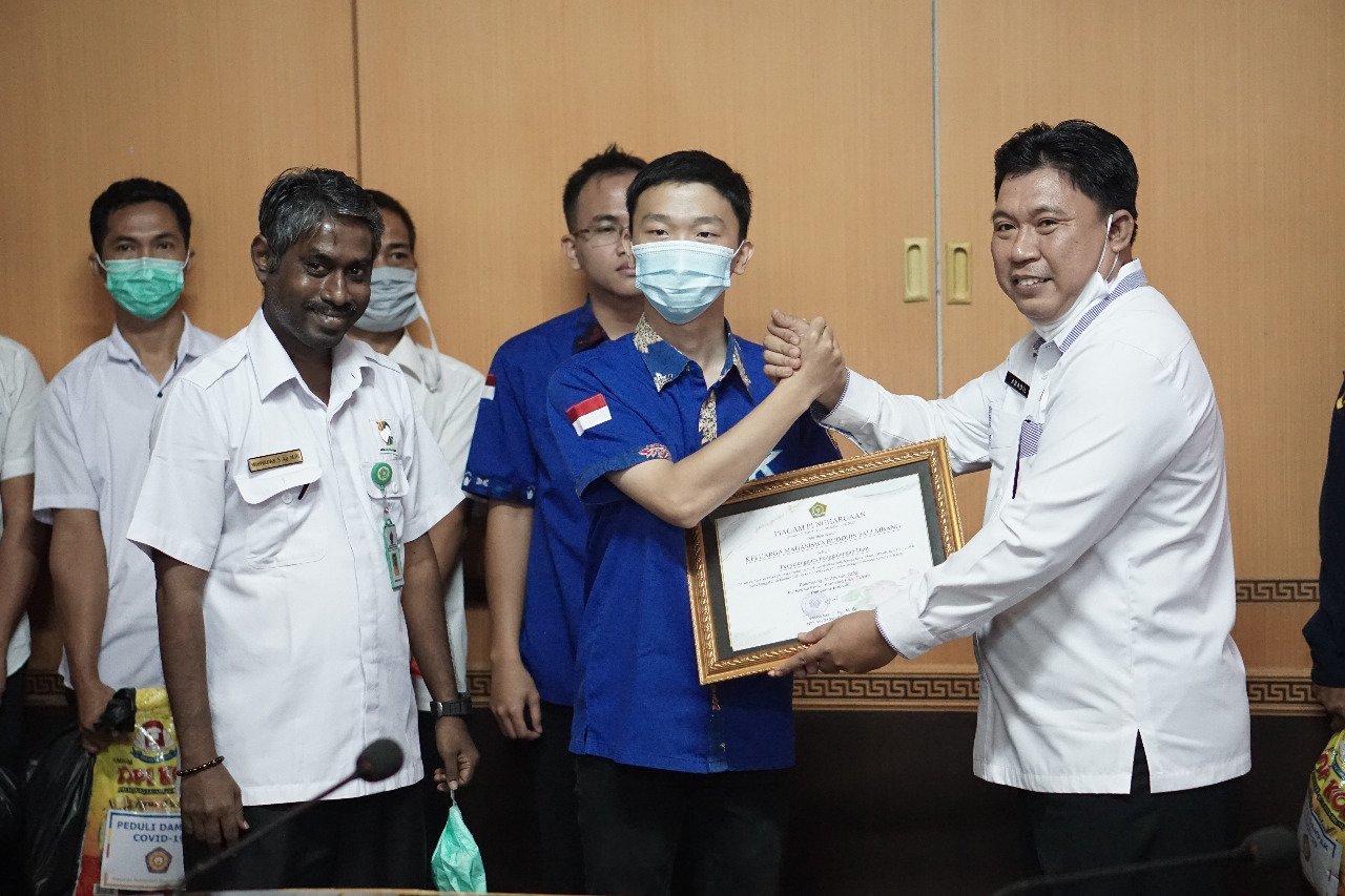 Palembang, KR Sumsel – Sejumlah perwakilan dari Keluarga Mahasiswa Budhis Palembang (KMBP) memberikan bantuan berupa paket sembako kepada seluruh pegawai Non PNS (Honorer) di Kantor Wilayah Kementerian Agama Provinsi Sumatera Selatan, Rabu (02/09).