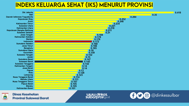 Mamuju,KRsumsel.com – Indeks keluarga sehat (IKS) di Provinsi Sulawesi Barat tercatat baru mencapai 14,5 persen dari total jumlah penduduk sebanyak 1.380.256 jiwa (data 2019), yang juga didasarkan pada 12 indikator keluarga sehat.