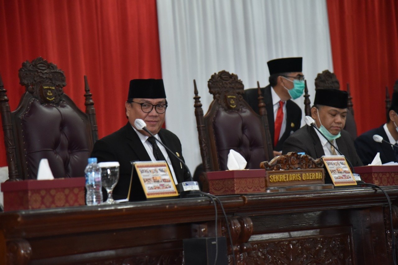 Palembang, KRsumsel.com – Mewakili Gubernur Sumsel H.Herman Deru, Sekretaris Daerah, (Sekda) Provinsi Sumsel H.Nasrun Umar menyampaikan jawaban Gubernur terhadap pemandangan umum fraksi-fraksi atas 3 Raperda, pada rapat paripurna XV DPRD Provinsi Sumsel, di ruang rapat paripurna DPRD Sumsel, Senin (15/09/20). Rapat itu sendiri dibuka langsung oleh Wakil Ketua DPRD Sumsel. Giri Ramanda Kiemas.