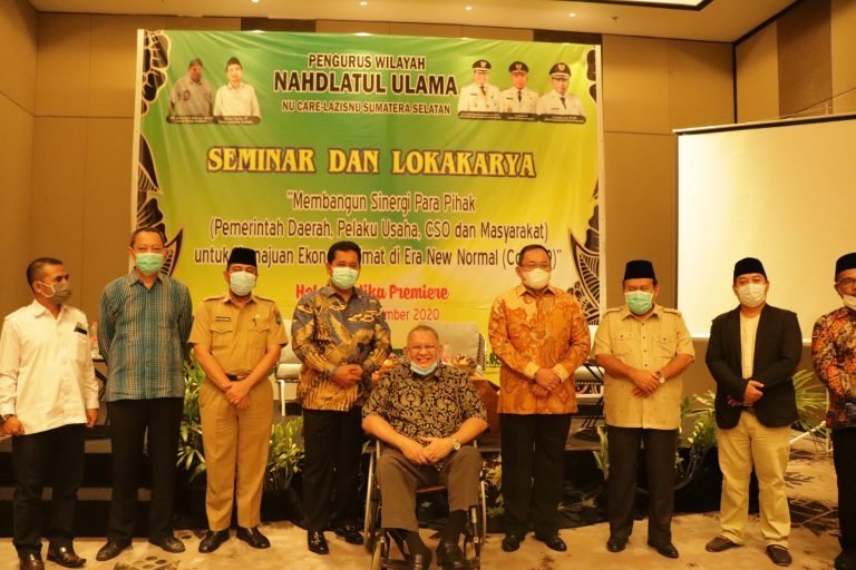 Pelaku Usaha, CSO dan Masyarakat) untuk Kemajuan Ekonomi Umat di Era New Normal (Covid-19) yang diselenggarakan PWNU Sumsel bersama LAZISNU Dengan Tema “Program dan Kebijakan Pemajuan Ekonomi Umat Kabupaten Musi Banyuasin di Era New Normal di Hotel Santika Premiere Bandara Palembang, Selasa (15/9/2020).