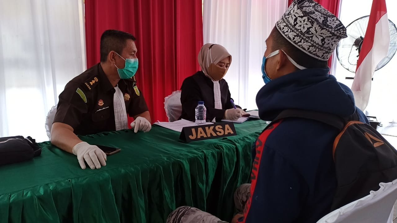 Satu-persatu warga didata dan diarahkan untuk mengikuti sidang.