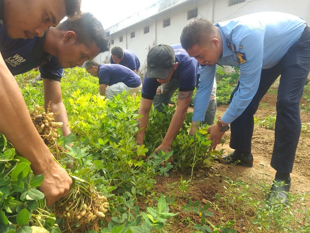 BANYUASIN.KRSumsel.com -Lembaga Pemasyarakatan (Lapas) Kelas IIA Banyuasin sukses melakukan penanaman dan panen kacang tanah di areal perkebunan seluas 250 m2. Selasa, (22/09/2020)