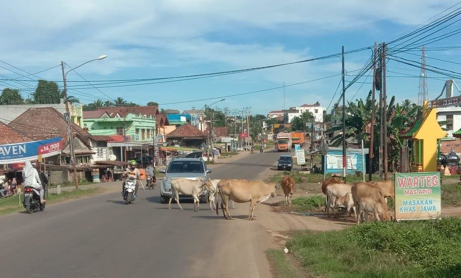 “Arif pun menjelaskan bawah tidak di tindak tegas akan terjadi kecelakaan di jalan tersebut,” dan Sapi ternak itu pun tak jarang menyebabkan kemacetan saat melintas di jalan raya. Pungkasnya
